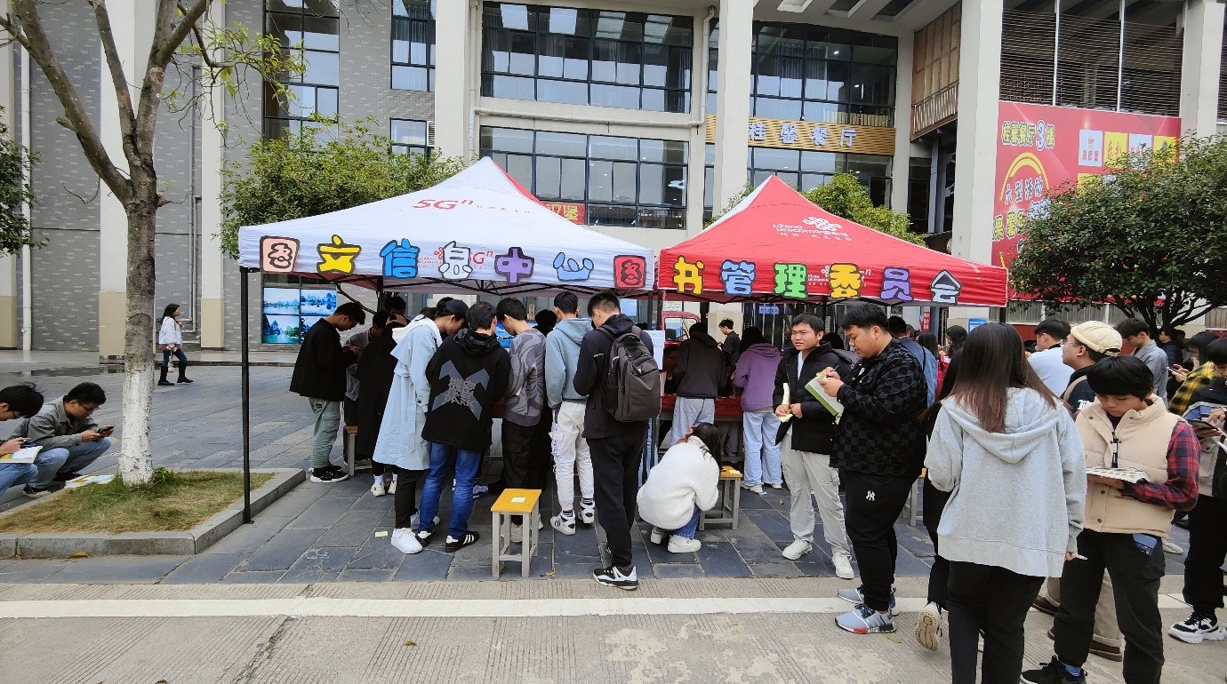 以营造浓厚的校园文化为目的,引导同学们积极读书,在书中获取知识,增加精神食粮为宗旨。图文信息中心图书管理委员会(以下简称:“图管会”)于10月22日,在一食堂门口举办 “揽中华之瑰宝,展少年之风采”第十届“读书月”启动仪式。