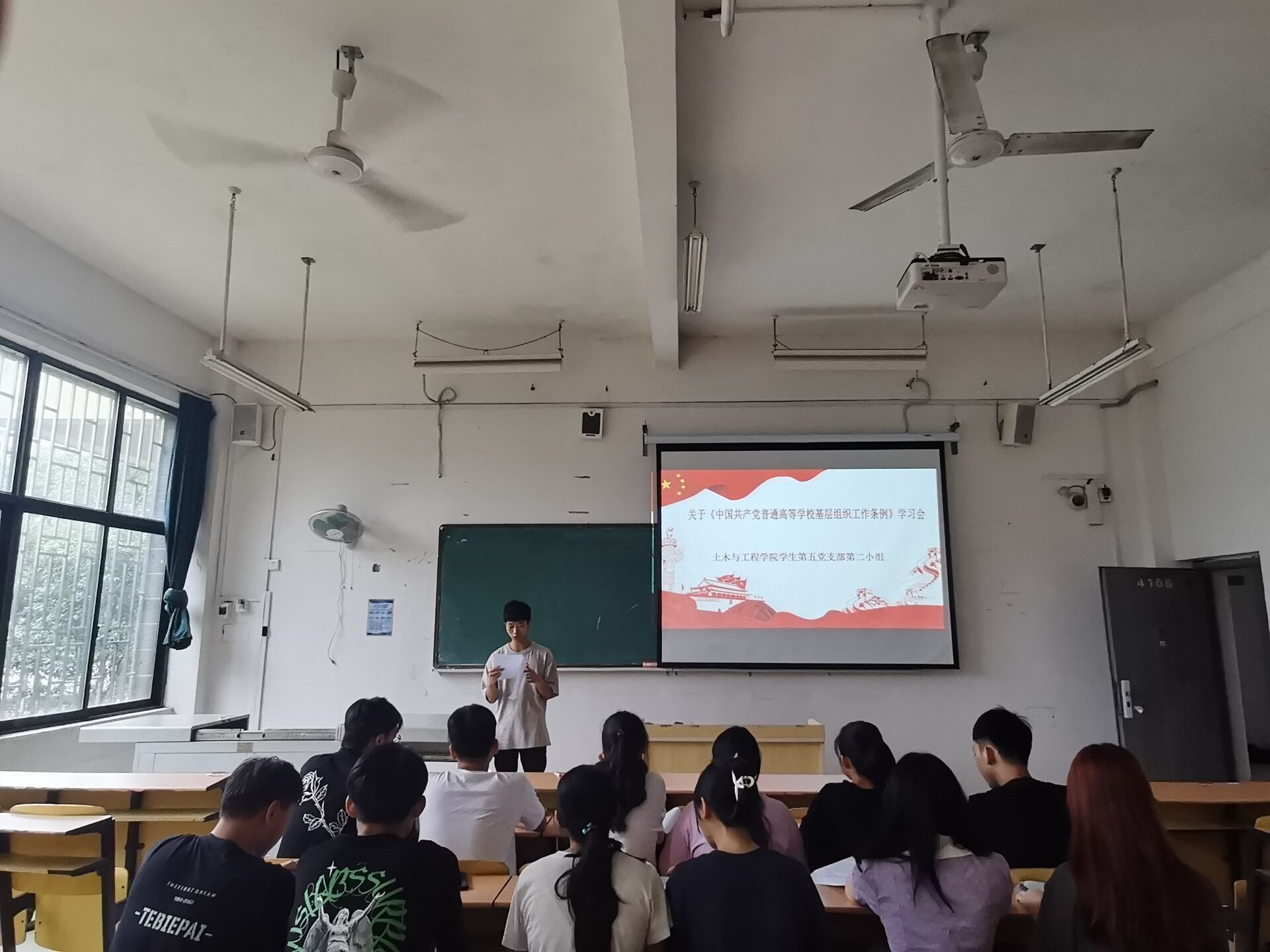【土工焦点】土木与工程学院学生第五党支部组织学习《中国共产党普通高等学校基层组织工作例》