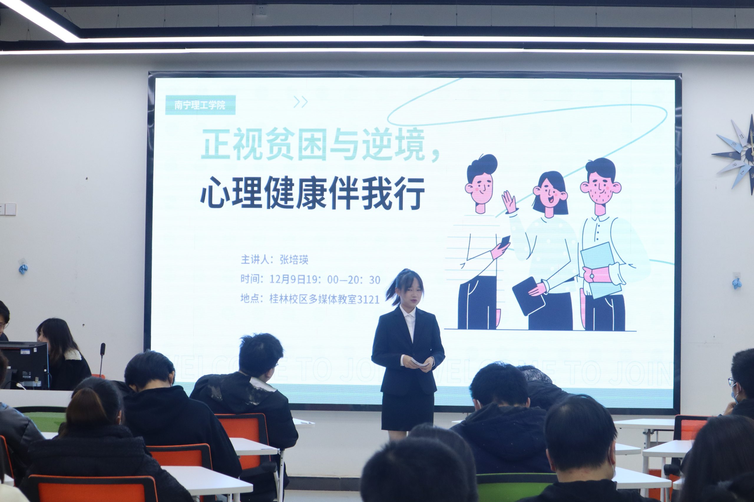 为呵护受助学生心理健康,鼓励受助学生正视困难与逆境,奋发向上,自立自强,按照资助育人“6个1”工程系列活动安排,12月9日晚上19点在教学楼3楼3121室开展了“正视贫困与逆境,心理健康伴我行”专题讲座,100余名学生参加了本次讲座。