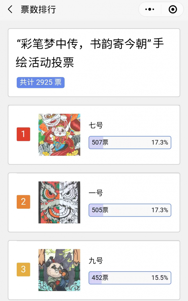 本次手绘活动围绕“传统节日”“非遗文化”等关键词进行创作。活动中全校学生积极参与,涌现出一大批优秀的绘画作品。工作人员首先对征集到的作品进行初评,入围作品在图管会官方微信公众号公布并进行投票评选,最后以票数高低评选出一等奖、二等奖、三等奖和优秀奖。在投票环节,同学们纷纷为自己喜欢的作品投上了宝贵的一票。