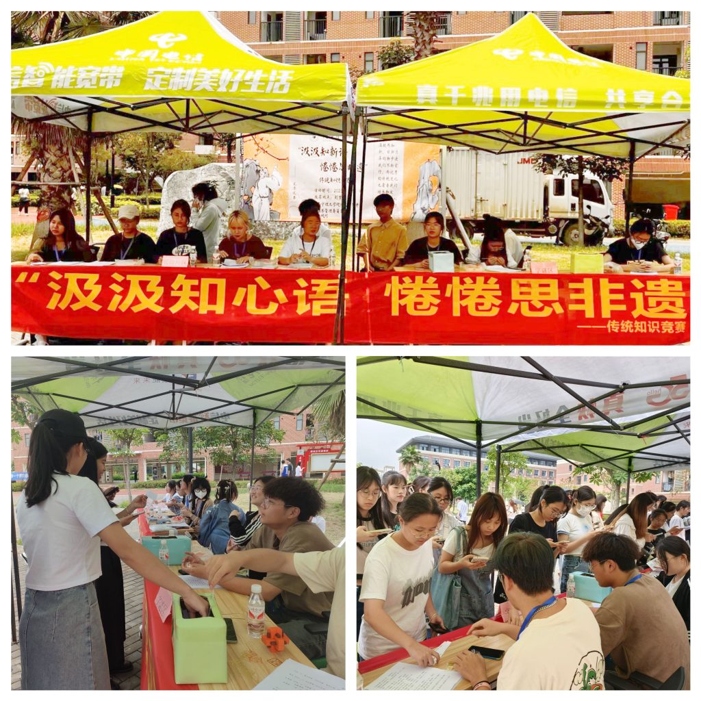 保护非遗文化,传承中华瑰宝。为宣传和传承中华优秀传统文化,培养学生对传统文化的热爱,向非遗传承注入青春力量。图书管理委员会(南宁东盟校区)于5月5日在南宁东盟校区食堂门口举办了第二届大学生阅读文化节系列活动之“汲汲知新语,惓惓思非遗”传统知识竞赛活动。