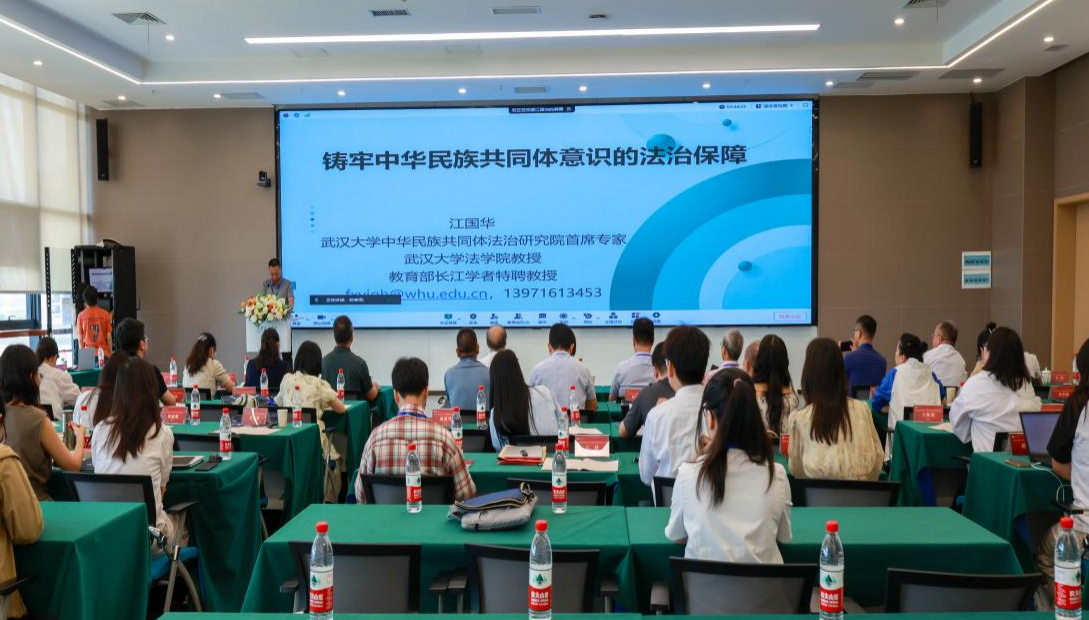 武汉大学法学院博士生导师、长江学者江国华教授以线上方式作题为《铸牢中华民族共同体意识的法治保障》的主旨报告。江国华教授以铸牢中华民族共同体意识在法治保障领域的五个核心命题为切入点,对关键概念进行深入剖析,为参会者系统、全面、科学的理解铸牢中华民族共同体意识提供重要的法治视角。