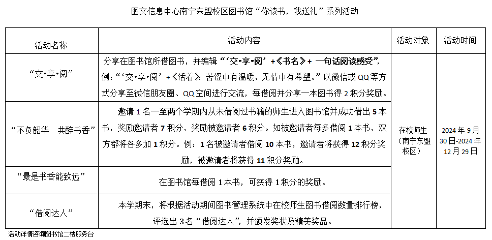 关于图文信息中心南宁东盟校区图书馆开展“你读书,我送礼”系列活动(第七季)的通知