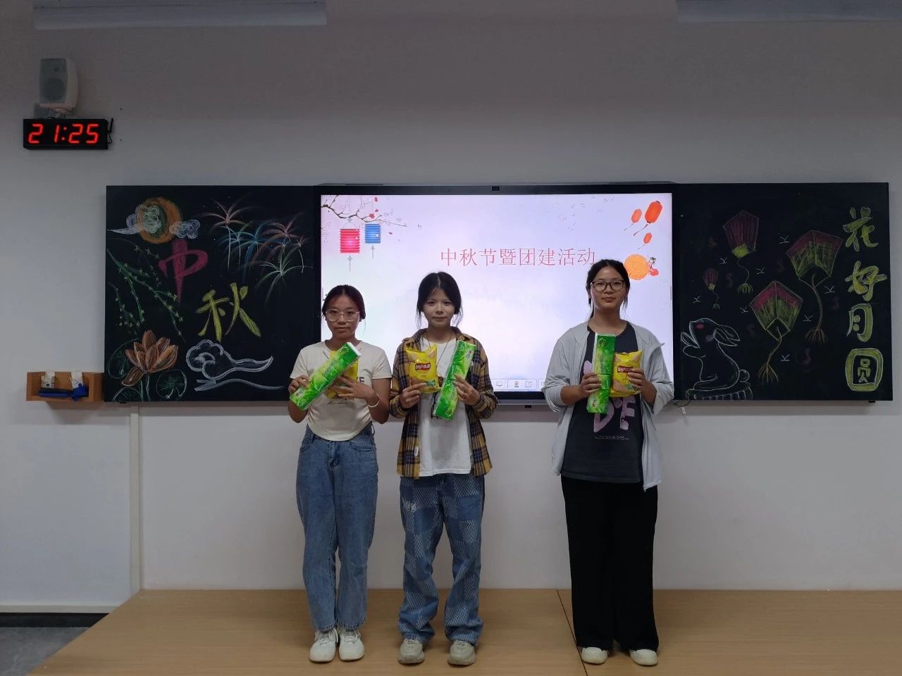 商学院各年级、各班级在中秋佳节举办各类中秋主题游戏活动,通过中秋猜灯谜、成语接龙、中秋知识问答游戏、抢凳子、合唱歌曲等小活动共同庆祝了这一传统节日。活动中还为大家发放月饼和小零食作为奖励,同时还对学习进步和有突出贡献的同学进行了奖励,让远离家乡的学生们感受到了节日的温暖和班级的凝聚力。