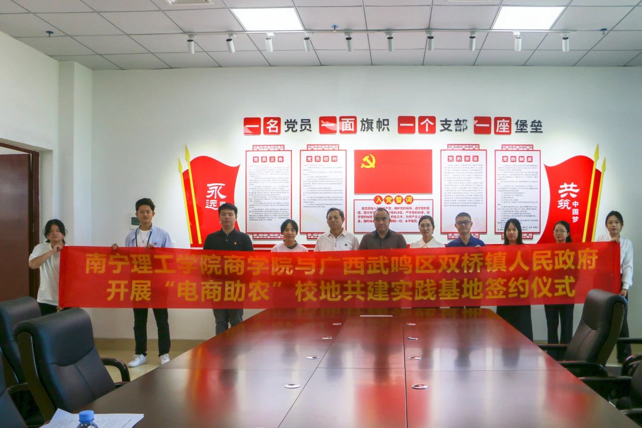 10月23日,南宁理工学院商学院与广西武鸣区双桥镇人民政府举行“电商助农”校地共建实践基地签约仪式,学校领导携商学院教职工出席。