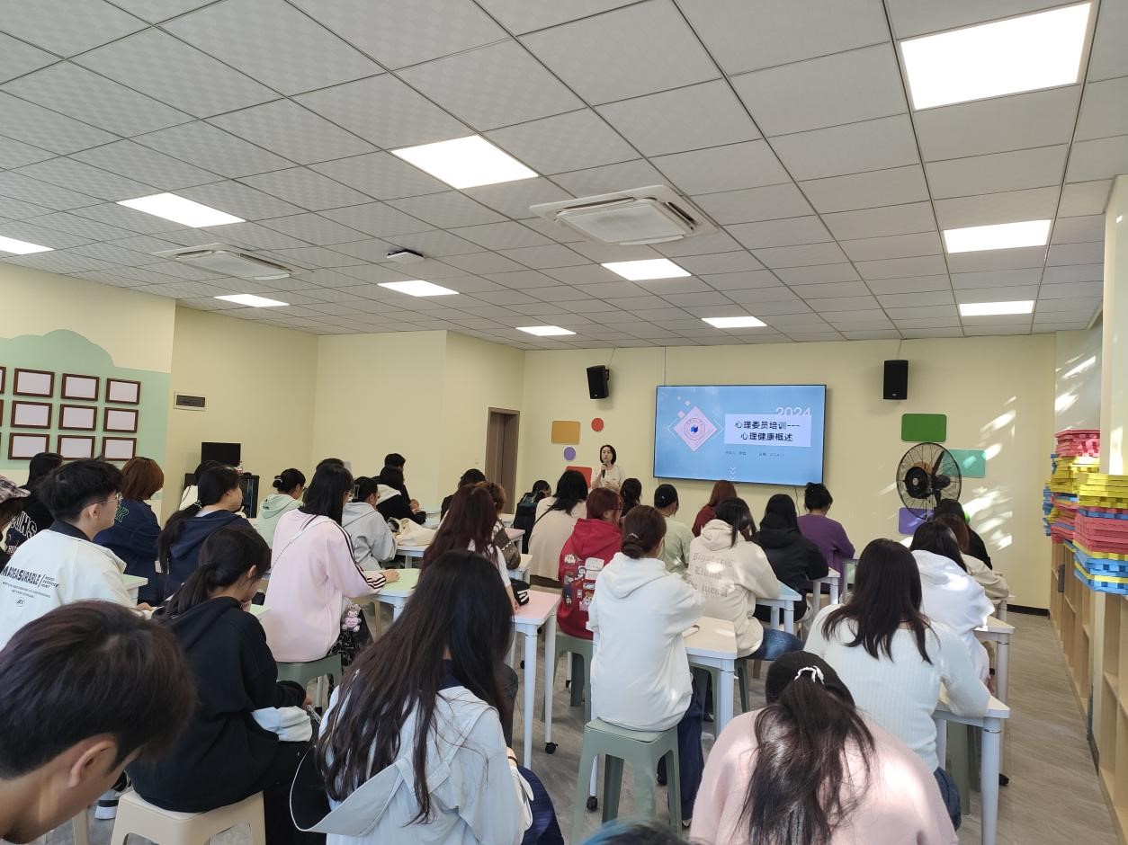 为进一步完善学校心理健康教育工作建设,完善学校心理健康教育工作四级预警机制,提升心理委员的心理素养及专业技能,我校学生工作部(处)心理健康教育与咨询中心于11月21日下午在心理中心团辅室举办2024年秋季学期班级心理委员培训,此次培训由心理中心罗雪老师主讲,各级学院心理委员代表参加。
