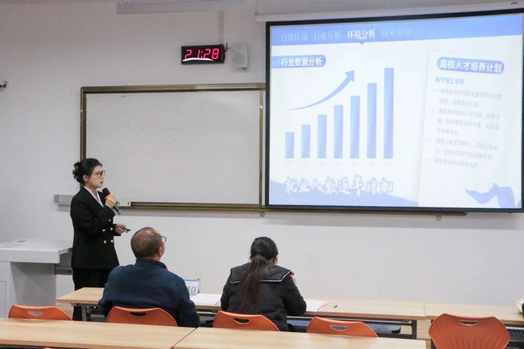 为深刻理解习近平总书记关于教育重要论述的科学内涵,全面贯彻落实党的二十大和二十届二中、三中全会精神,依据《南宁理工学院关于举办2024年度大学生职业规划大赛校级预赛的通知》的指示精神,商学院于11月27日在A3304—A3305教室成功举办“筑梦商海航程,规划青春职路”大学生职业生涯规划大赛的初赛活动。党总支书记姚顺良及各年级辅导员代表共计4人参加。