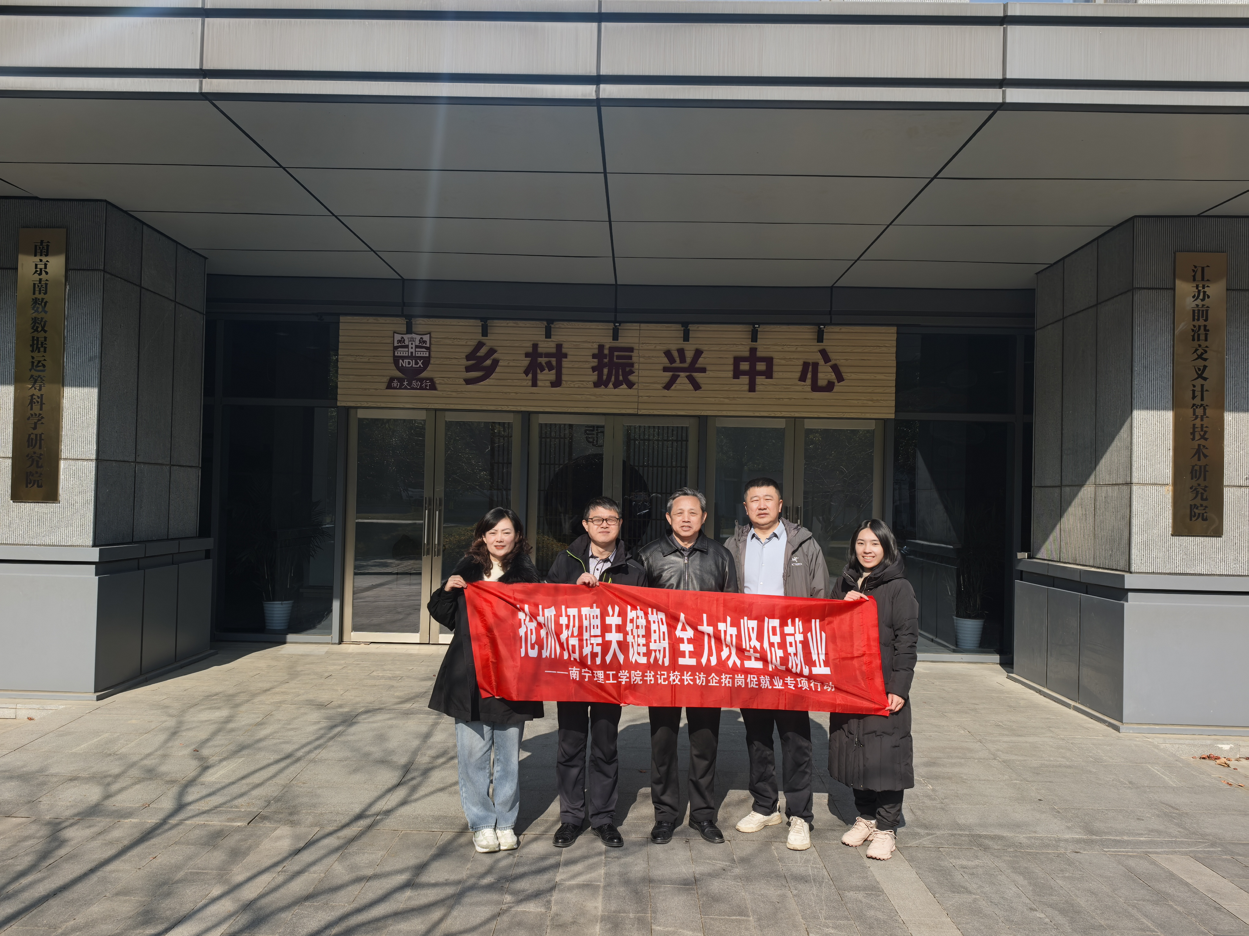 2024年12月20日,商学院领导带队前往南京大学南数数据运筹科学研究院有限公司(以下简称“南数研究院”)开展“访企拓岗促就业”专项行动。商学院院长姚瑞基、副院长囤荣立携电子商务教研室主任唐莉琼、工商管理教研室专任教师李家仪与企业负责人进行了深入交流。此次行动旨在深化校企合作,了解企业需求,拓展学生就业渠道,为毕业生高质量就业奠定坚实基础。