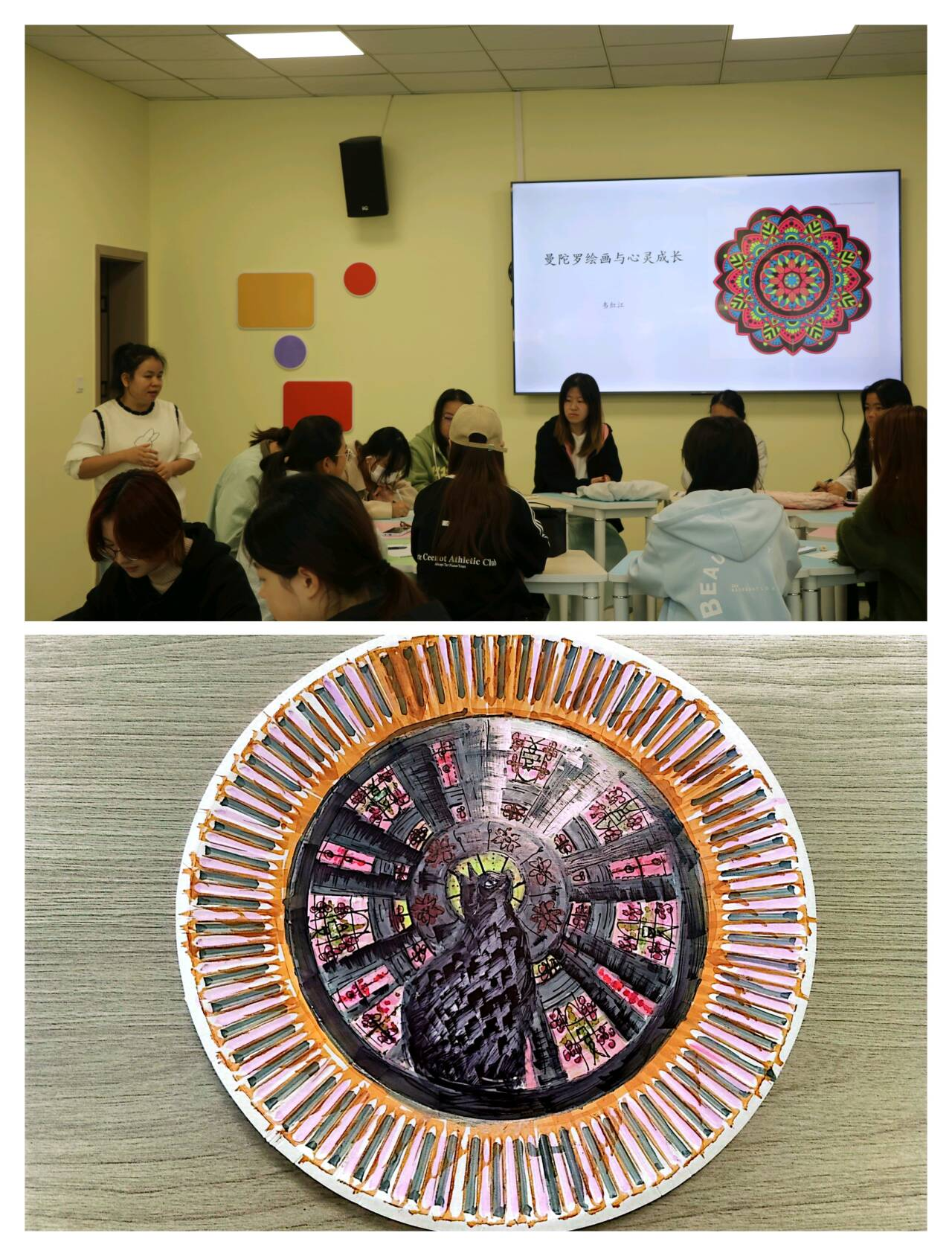 心理健康教育与咨询中心韦红江老师负责对接商学院,于12月3日至19日指导开展了4期的曼陀罗心灵成长体验营活动。该活动以初识曼陀罗——了解曼陀罗——与曼陀罗共舞的团辅思路,让学生了解曼陀罗和曼陀罗绘画的内涵,切身体验绘制结构化曼陀罗和非结构化曼陀罗的感受,帮助学生聆听自己内心真实的声音,觉察当下的心理状态,缓解情绪困扰,达到心灵成长。