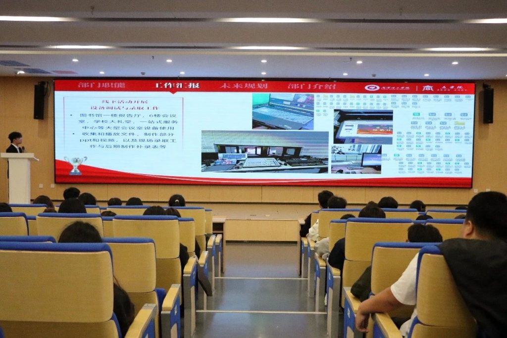本次大会由分团委学生会文艺部陈昭君主持,大会伊始,对各部门优秀干事及干部进行颁奖表彰,部门各位负责人以PPT、视频等形式,进行一学年以来的工作成果回顾总结和部门风采建设展示。在整个述职展示过程中,各干部既简明扼要的介绍各自部门的特色亮点,又自我剖析并阐明各部门目前存在的短板和问题,会议现场气氛活跃,取得不错的效果。