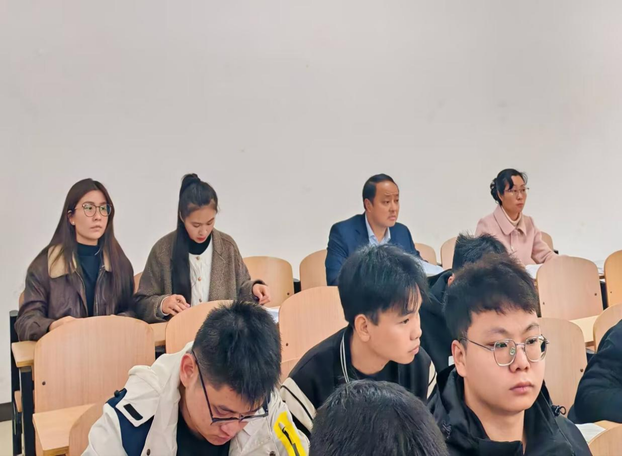 3月4日上午,在我校南宁东盟校区,韩乔副校长来到马克思主义学院田鸿颖老师的“毛泽东思想和中国特色社会主义理论体系概论”课堂听课。马院院长黄德林、党政办公室主任何萍源、教学科研管理处副处长朱新辉、教研室主任杨雪莹以及教学秘书刘一嫄陪同听课。