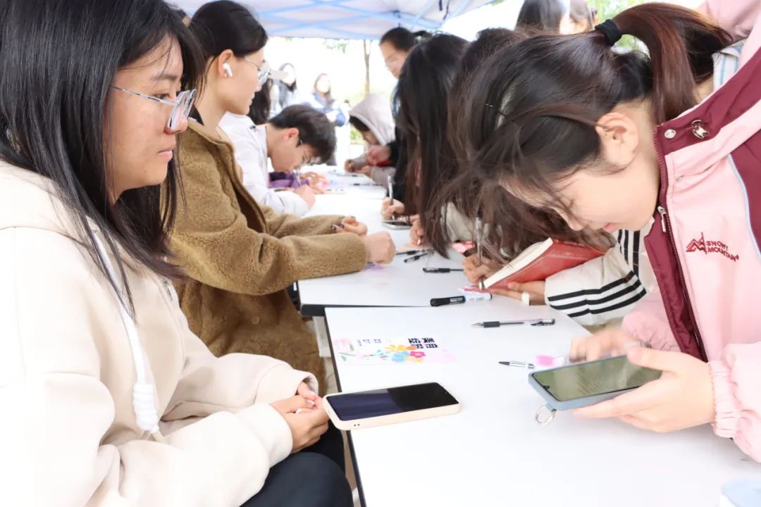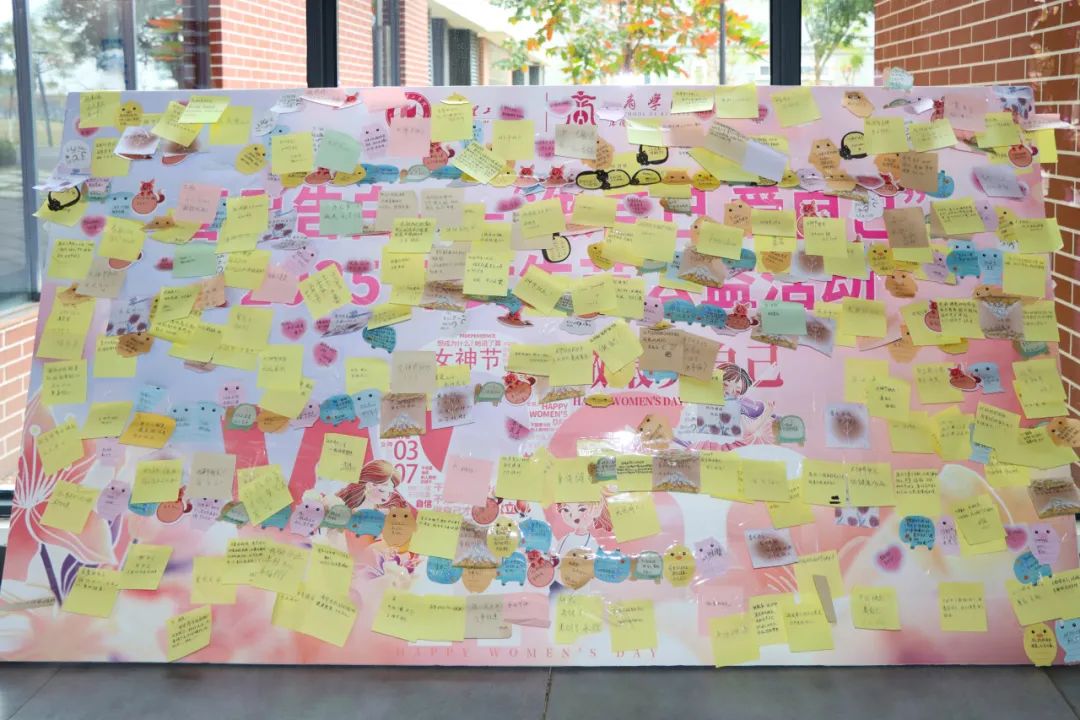 活动当日,校园内呈现“三全育人”的生动图景。在文化浸润区,二食堂广场设置的“心愿银河”互动装置吸引千余名师生驻足,通过书写祝福卡、录制告白视频等形式,构建起跨性别对话的温暖场域。在知识赋能区,一站式服务中心循环播放的《女性成长启示录》系列教育片,将生理健康、法律维权、职业发展等内容有机融合,现场设置的“智慧锦囊”咨询站更实现了理论教育与实践指导的深度结合。在情感联结区,志愿者团队开展的“致敬微光”行动别具匠心,为22位女教师和宿管阿姨送上定制花束与手写书信,让尊师重教传统与劳动教育理念在仪式感中自然传递。