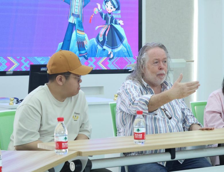4月14日上午9时,英国剑桥莎士比亚戏剧团一行应邀来到南宁理工学院文理学院,与师生展开了一场以“智汇经典,艺融中西“为主题的文化交流活动。此前一日,戏剧团在校园内上演的经典剧目《仲夏夜之梦》以独特的现代演绎引发热议,此次交流聚焦经典改编的创新实践与跨文化共鸣,现场气氛热烈,思想火花频现。