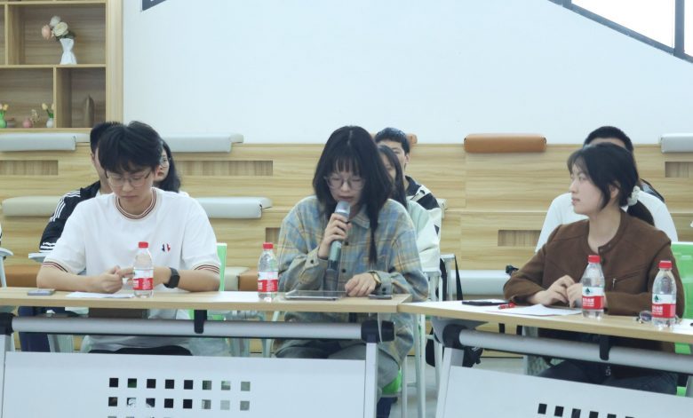 活动伊始,同学们踊跃提问:“在保留原著精髓的基础上,《仲夏夜之梦》如何通过舞台设计与表演革新吸引年轻观众?“对此,戏剧团导演大卫·克里利(David Crilly)回应道:“主要就是对于韵脚的创新,每个角色的台词都有自己的韵脚,像王后和国王属于贵族阶级他们的韵脚就为五个拍,像工匠团属于普通阶级,台词方式呈现就比较平民化。再是台词节奏的创新,以五拍为基础,让台词以诗歌的形式展现“大卫导演的回答让同学们更加深入的了解了剧中的创新设计和舞台展现。