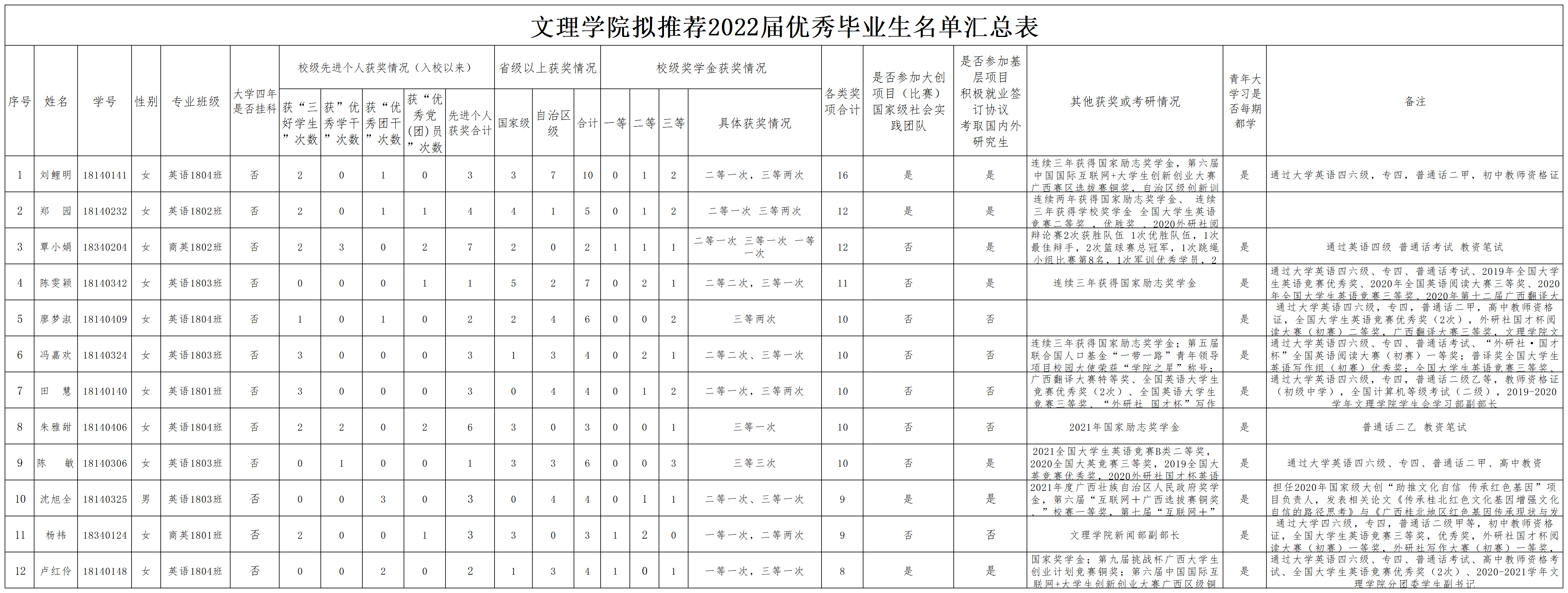 为了充分发扬民主,增加评优评先工作透明度,现将文理学院2022届优秀毕业生拟推荐名单在全院范围内公示。