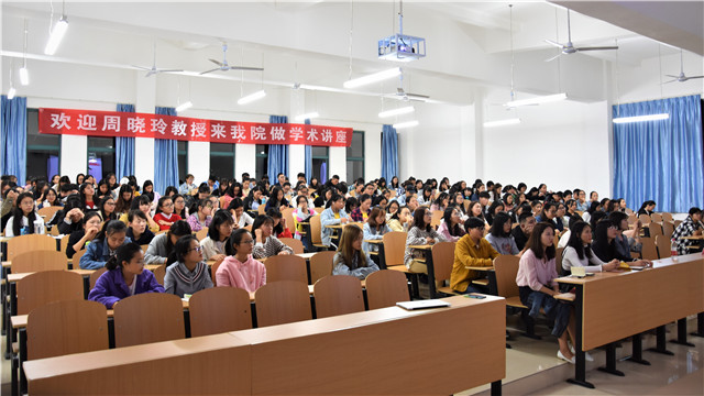 在经过翟洁老师的简单介绍后,周晓玲教授围绕好好读书,读读好书,知性优雅三方面进行讲演。周晓玲教授以书中片段为开场,介绍了阅读的好处,并给同学们推荐了一系列的丛书,并着重介绍女性丛书,向同学们展示了女性应该知性优雅,引起了同学们的浓厚兴趣。周晓玲教授就女性的社会地位和如何看待爱情做出提问,引起了同学们的深思。此次讲座资料丰富多彩,语言生动幽默且具有哲理,同学们均感到受益匪浅。