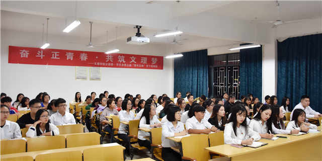 为提高学生干部的思想政治素养,增强组织文化自信。11月5日晚,我院在4228教室举行了以“一起学‘习’,做文理先锋”为主题的2018年“青年先锋”骨干培训会,此次培训会由文理学院分团委书记覃泰树主讲,学生会全体成员出席。