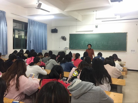 为增强我院学生的日常行为规范,正确引导学院学生规范自身学习及养成良好生活习惯,根据《桂林理工大学博文管理学院学生日常行为规范(试行)》的通知要求,11月5日晚8时,我院分别在1307教室和4103教室召开了学生日常行为规范学习主题班会,班会由学院闭永姐、覃两名辅导员担任班会主讲人。