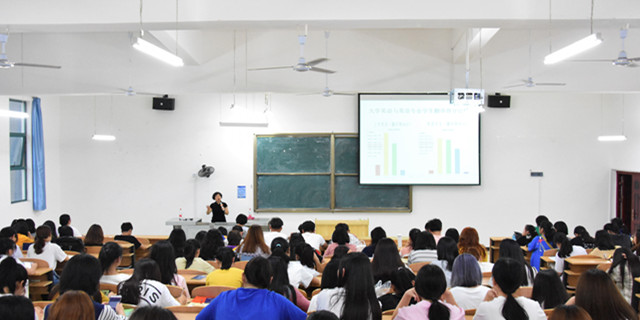 为了提高同学们的英语学习兴趣,回归英语语言基本功。2019年5月22日晚,我院在1413教室举办了以“回归语言基本功”为主题的学术讲座。此次讲座的主讲人为广西师范学院漓江学院系主任何玲,文理学院18级全体学生参加了此次讲座。