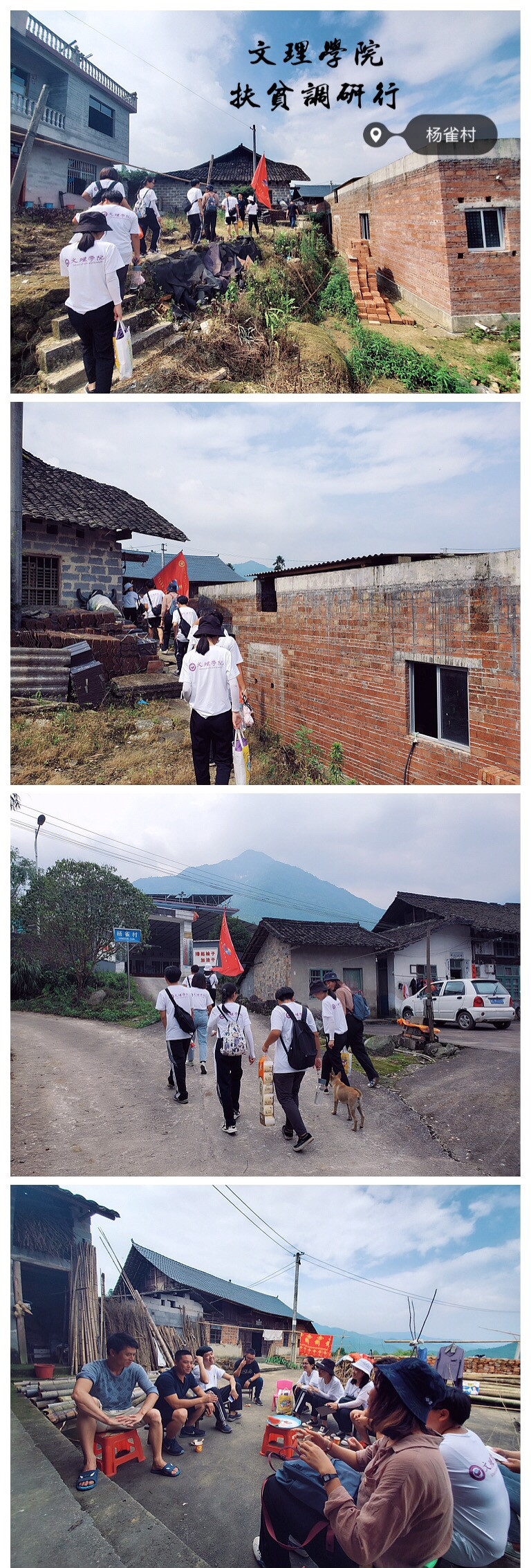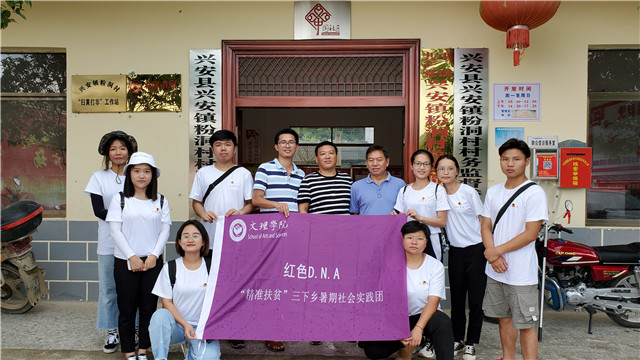 为引导和帮助广大青年学生在社会实践中受教育、长才干、做贡献,我院积极响应全国大中专学生“三下乡”暑期社会实践,深入贯彻落实我校2019年“三下乡”暑期社会实践项目活动要求,组建了一支以“红色DNA”为名的“三下乡”暑期社会实践团队。6月30日至7月6日,我院社会实践团队桂林市兴安县成功开展了为期一周的社会实践活动,走访五甲村、杨雀村、清水村和粉洞村等地,通过实地调研、采访等诸多方式深入了解奋战在扶贫一线的“第一书记”工作现状,深入调研贫困村、贫困户的情况,了解到各地脱贫模式助力脱贫攻坚、乡村振兴。