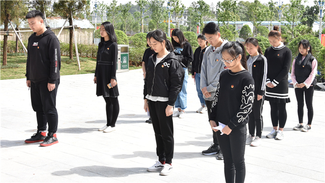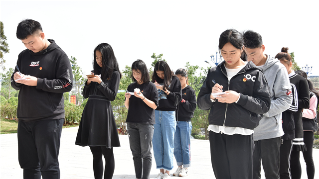 活动伊始,全体青年团员以事迹接龙的形式诵读马君武先生的生平事迹,并在事迹卡片上写下对革命烈士的寄语,依次将寄语投入“缅怀先烈寄语箱”中。紧接着,青年团员们用庄重的三鞠躬表达了对先烈的深切哀悼和无尽的敬仰之情,献上了自制的纸花以感恩先烈换来了我们今天来之不易的幸福生活的无私奉献。在回响的哀悼词中,全体团员默哀一分钟,以此表示对先辈的寄托与哀思。最后,全体青年团员在纪念碑下重温入团誓词,并庄严承诺将努力学习,继承和发扬革命先烈的遗志,为祖国的建设和发展奉献自己的青春和热血,本次主题团日活动在铿锵有力地宣誓声中落下了帷幕。