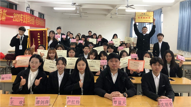 各部门代表分别从部门风采,工作总结、存在问题、部门展望等四个方面进行了PPT讲述,各部门就2020年度部门中存在的问题进行分析总结并阐述2021年工作计划。分团委·学生会主席团代表谭剑萍对我院分团委·学生会2020年工作进行总结并说明下学期计划。随后,覃老师和主席团成员为获得2020年文理学院分团委•学生会“十佳成员”“五佳部门”的部门或个人进行颁奖。报告会最后,覃老师对此次述职报告会做出总结发言,他对我院分团委·学生会在过去一年所取得的成绩给予充分的肯定,同时指出过去一年我院团学工作中存在的不足并提出宝贵的意见,他表示2021年应积极推动我院分团委·学生会改革进程,同时他强调全体学生会干部要不忘初心,做好榜样引领作用。