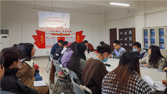 为了向党组织输入新鲜血液,贯彻落实《加强和改进发展党员工作的若干意见》的通知(桂组发﹝2019﹞17号)。12月10日下午,我院学生党支部在3424学院党员活动室召开支部党员大会,会议主要议题有研究讨论学生党员发展、学生预备党员转正、支部换届等问题,大会由学生党支部书记覃同志主持,学院党总支副书记出席大会。