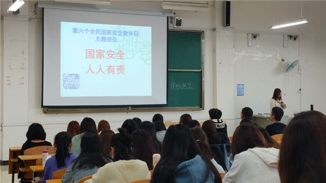 今年4月15日是第六个全民国家安全教育日。今年的活动主题为“践行总体国家安全观,统筹发展和安全,统筹传统安全和非传统安全,营造庆祝建党100周年良好氛围”。主题班会上,各年级辅导员通过播放国家安全教育视频,并详细介绍《国家安全法》《反分裂国家法》等法律,强调维护国家安全的目的与意义。随后,对2021年“三月三”放假具体时间进行说明,特别对全体学生强调了近期疫情防控重要性;严禁出现旷课提前离校等现象;留校的同学需严格遵守宿舍规定,严禁使用大功率电器,注意正常作息合理饮食,切勿出现长时间熬夜、暴饮暴食等情况;同时辅导员们还叮嘱离校时的交通安全、财产安全以及食品安全问题,祭祖的同时还要注意预防火灾、溺水等事故。