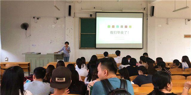 班会伊始,赖远妮老师就毕业档案寄送、离校手续办理、三方协议、安全文明离校等事宜做了详细的讲解。赖老师就“感恩”话题对毕业生提出以下期望:学会感恩父母、感恩学校、感恩同学,进而感恩整个社会。最后,她向2018届毕业生提出以下几点要求:1、要谨遵校规,安全离校,展现良好精神风貌,共创文明和谐校园;2、铭记师恩,感恩离校,彰显文理人文情怀,以实际行动为母校献礼;3、奉献爱心,文明离校,传递同学深厚情谊,为母校送上祝福;4、调整心态,理性离校,不断挑战自我,成就社会价值。