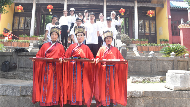 2018年7月9日上午10:30,由覃泰树老师带队指导的“探寻者”暑期社会实践团成功抵达恭城瑶族自治县,并将展开为期五天的调研学习实践活动。寻着古色古香的特色砖瓦建筑,实践团开始了本次社会实践的第一站—文武庙。恭城文庙,又称孔庙,是纪念我国古代杰出教育家、思想家孔子的庙宇。根据实践团的实地采访,了解到恭城文庙是广西境内现存规模最大、历史最悠久、气势最宏伟并且保存最完整的庙宇。在实地考察中,覃泰树老师带领团队队员们学习由中国古代圣贤孔子创立的儒家思想,教导队员们在日常的学习与生活中要继承并发扬儒家智、信、圣、仁、义、忠的六德思想,争做新时代新青年。在随后的武庙参观考察中,实践团欣赏了一出由本地艺术家表演的惟妙惟肖的地方戏剧—桂剧,老艺术家极具地方特色的唱腔以及戏剧动作给实践团带来了一出视听盛宴。在随后对桂剧表演艺术家的跟进访谈中,实践团了解到桂剧作为广西的重要剧种之一,经国务院批准已经列入第一批国家级非物质文化遗产名录之中,老艺术家不仅讲解了桂剧的前世今身,更通过对京剧、越剧等剧种的对比,梳理出中国传统戏剧发展的主要脉络。
