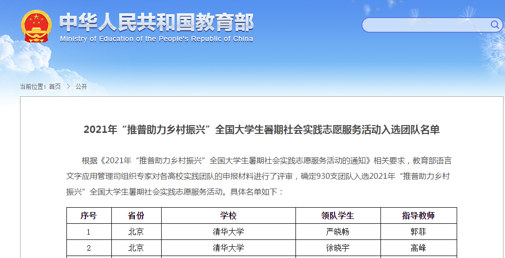 【喜报】我校“文理知行”暑期社会实践团队入选2021年“推普助力乡村振兴”全国大学生暑期社会实践志愿服务活动