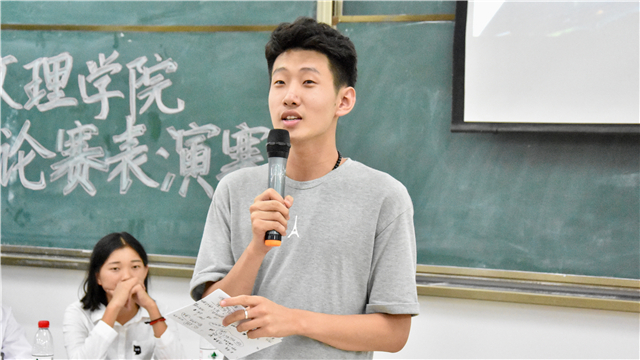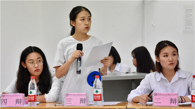 为广大青年大学生提供一个展示和检验自己口才能力的平台,积极引导学生增强语言魅力,努力锻炼,养成主动探索真理的好习惯。9月19日晚19:30,我院在1513教室成功举办辩论赛表演赛。本次辩论赛表演赛由文理学院辩论队的两支队伍进行交战。校级辩论队队长曹毅、商学院辩论队副队长陈蓉、土木与工程学院辩论队队长谷毅娜、建筑与设计学院辩论队队长李林昊、信息工程学院辩论队队长黄霄艳作为嘉宾出席本次表演赛,2018级全体新生出席本次活动。