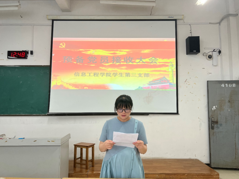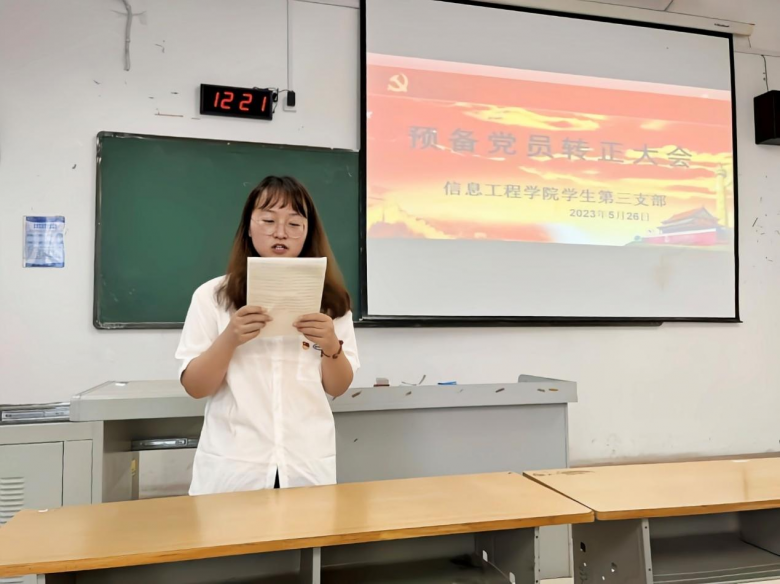 为提升组织凝聚力,不断壮大党员队伍,为党组织注入新鲜血液。信息工程学院学生第三支部于5月26日在4108举行了预备党员转正大会。本次会议经报党委批准,由党支部书记白小花同志主持召开。