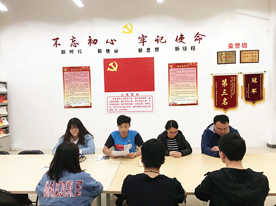 根据《中国共产党章程》及《中国共产党基层组织选举工作暂行条例》的有关规定,我院学生第一党支部支委会现任期已满。本次大会上,支部书记代表支委会向大会做了工作报告,与会党员认真听取、审议并表决通过了报告,接着宣读了党支部换届选举办法并介绍支委候选人情况,支部党员充分行使权力、认真填写选票,以无记名投票的方式差额选举产生了由支部书记、三位党员组成的新一届支部委员会。