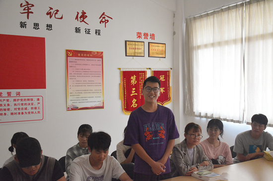 活动最后,支部书记总结,黄文秀同志用美好青春诠释了共产党人的初心使命,大学生党员要学习她甘于奉献的价值选择和奋斗精神,做好自己的本职工作,进而影响身边的同学,发挥党员的先进性。