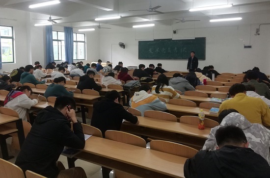 本次考试采取闭卷形式,试题分为填空题、单选题、多选题、简答题、论述题,考试时间60分钟。主要从党章、党的十九大及相关会议精神、“不忘初心、牢记使命”主题学习教育、时事政治以及日常教育学习案例等多个方面对入党积极分子进行了系统的考查。考试过程中,各入党积极分子凭借日常的学习与对党的理论的积累和实践,在考试中沉着应试,认真作答。监考人员履行职责,维护考场秩序。