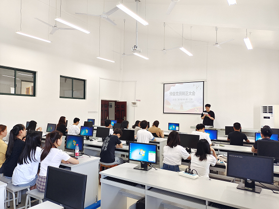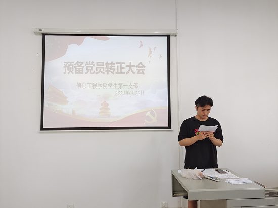 6月22日,信息工程学院学生第一党支部于2605教室召开预备党员转正大会。大会讨论关于李金善等十五名同志申请转为中共正式党员的相关事宜。本次会议经报党委批准,采用线上线下相结合的方式进行,支部全体党员参加大会。