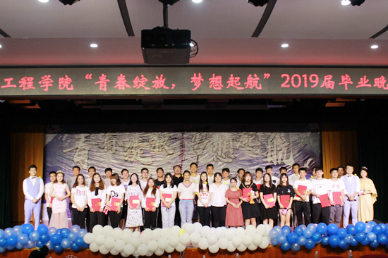 晚会最后举行了学院2019届优秀毕业生颁奖典礼,校学工处处长、信息工程学院党总支副书记和毕业班辅导员分别为46名优秀毕业生颁发证书并合影留念。