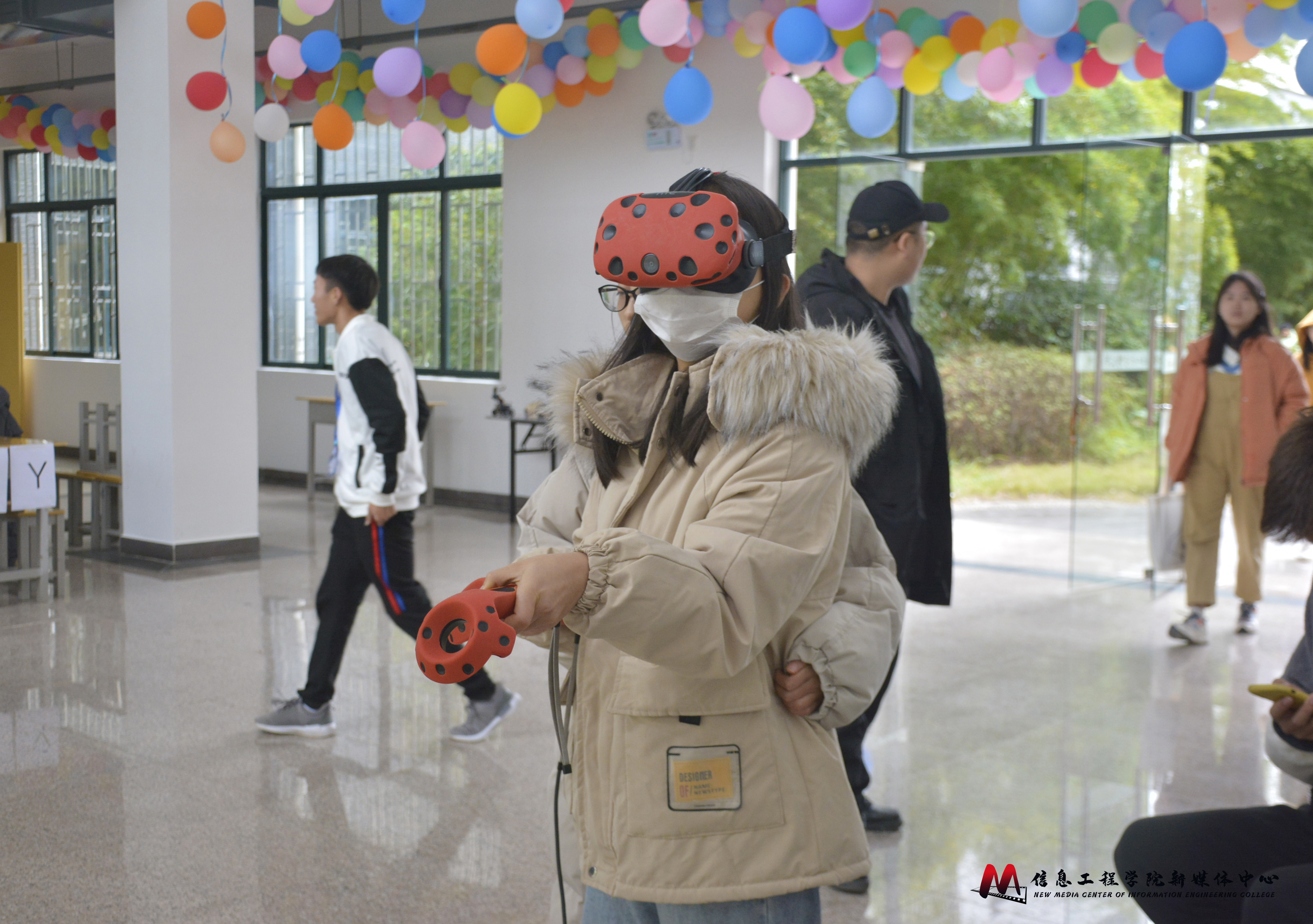 本次的大学生科技节活动内容丰富,形式多样,分别有“科技知识竞答、DIY制作、VR体验、无人机体验、飞思卡尔实验室遥控小车体验”等。活动现场中丰富有趣的活动内容吸引了广大师生的兴趣, 特别是在VR体验中,通过视觉、听觉等全方位立体化的运用,充分体现了我院学子在科技创新、独立思考、实践动手等方面能力上的创新。