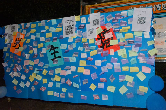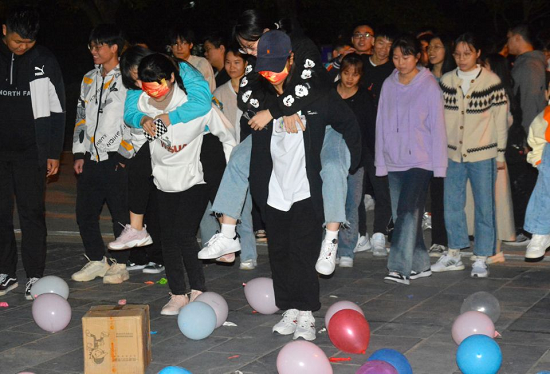 本次活动分为两大环节。上午11点11分,第一环节心愿墙活动准时拉开帷幕。本次活动设有男生心墙区和女生心墙区,参与活动的同学纷纷在“心愿卡纸”上写下自己的愿望,并张贴在各区设置的许愿墙上。五彩斑斓的贴纸带着诚挚的祝福,让校园里充盈着欢乐的气氛。傍晚时分,当星星灯围绕活动区域时,第二环节趣味运动也正式展开。“瞎子背瘸子”、“猜猜我是谁”、“猜成语”、“双人背气球跑”等游戏吸引了大批学生,大家争先恐后地走进游戏场地加入其中。轻松欢快地游戏氛围和同学们清脆爽朗的笑声,将现场气氛层层推至高潮。