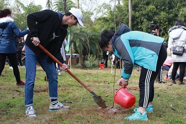 为树立青年学生生态文明意识,积极担当新时代使命和责任,以实际行动践行绿色发展理念,推进美丽桂林建设。3月10日上午,信息工程学院分团委·学生会携手桂林市园林局在桂林市园博园开展以“绿化美丽桂林,扬我雷锋精神”为主题的义务植树活动。