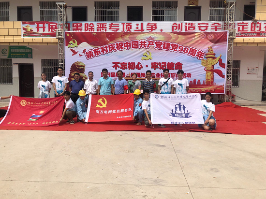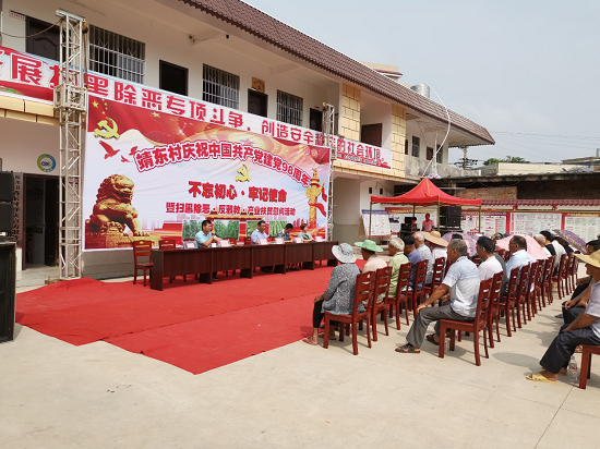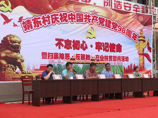 2019年7月1日,为隆重纪念中国共产党成立98周年,总结“创先争优”活动成果,展示党组织和广大党员取得的优异成绩和良好的精神风貌,不断增强党组织的凝聚力和战斗力,激发广大党员干部积极向上、爱岗敬业的工作热情。靖东村党支部与桂林理工大学博文管理学院信息工程学院在马坡镇靖东村公共服务中心共同举办了建党98周年庆祝活动。
