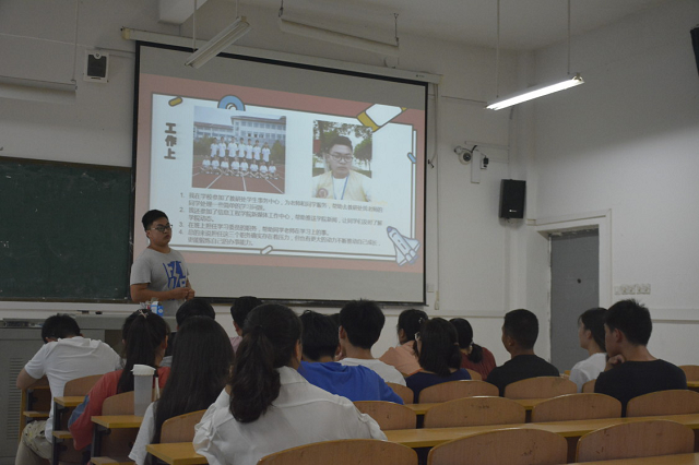 活动伊始,各学员按照抽签顺序依次进行三分钟的PPT自我展示。评选过程中,各学员结合大学期间的学习情况和实践活动,向在场师生展示了自身优异成绩和成长经历。他们不畏艰难、积极进取,本着“我奋斗,我无悔”的青春激情展现出当代大学生的精神风貌,博得在场师生的阵阵掌声。