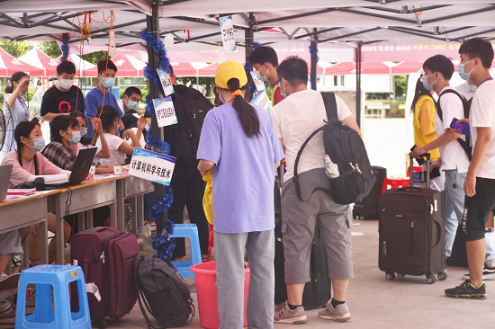 图为新生办理入学手续