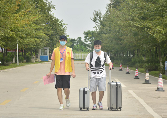图为我院志愿者引导新生前往宿舍