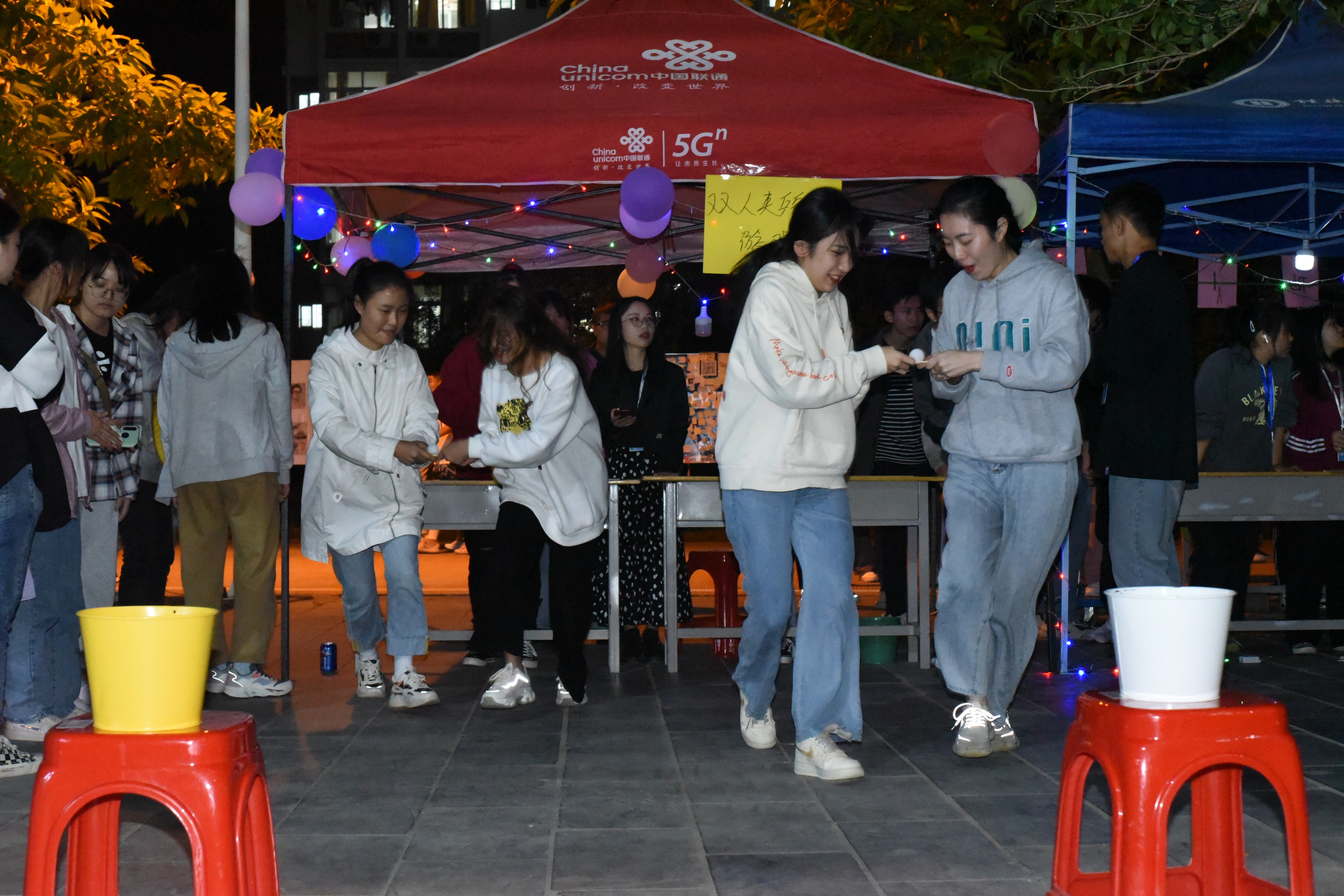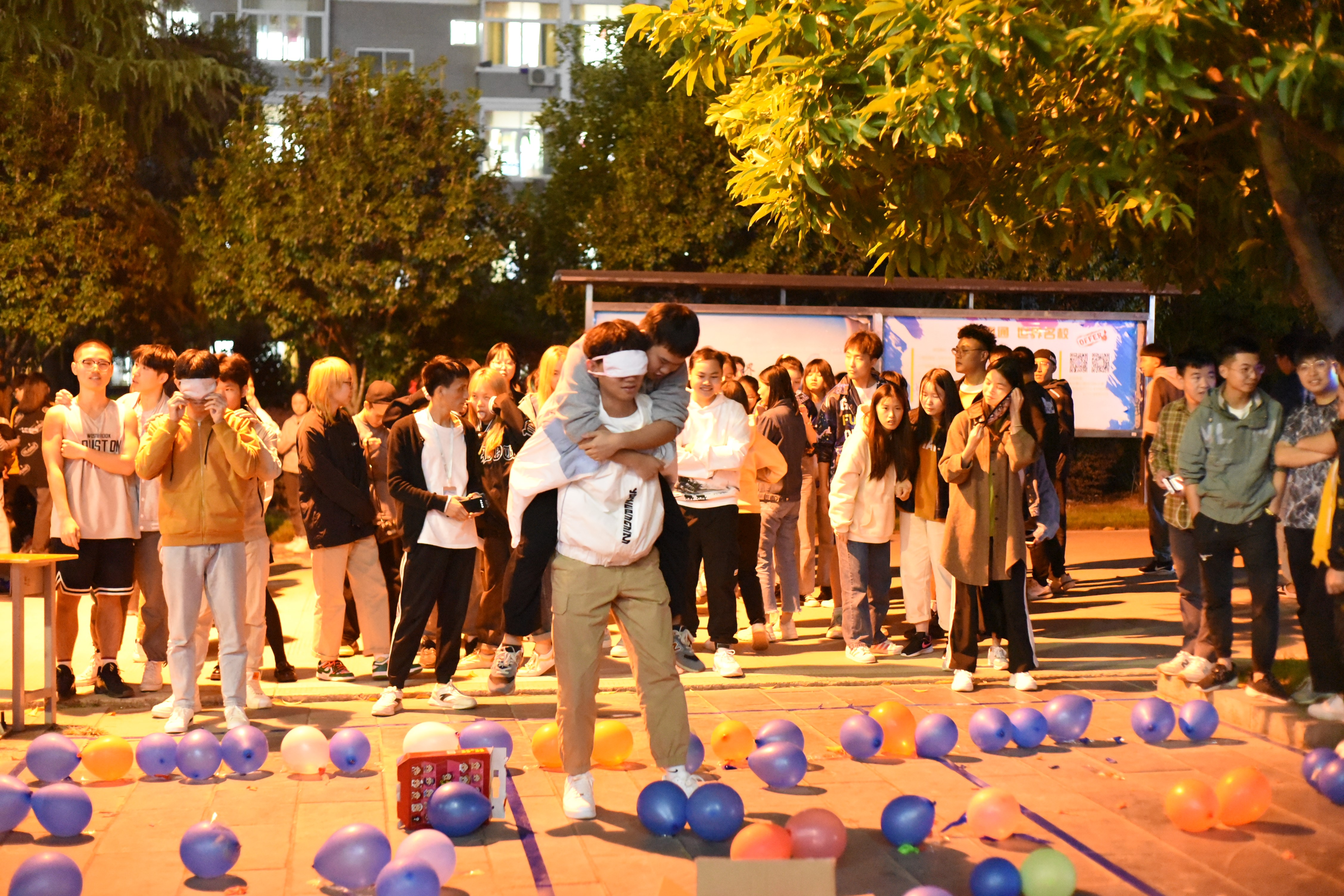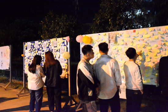 本次活动分为两大环节。上午11点11分,第一环节心愿墙活动准时拉开帷幕。本次活动设有男生心墙区和女生心墙区,参与活动的同学纷纷在“心愿卡纸”上写下自己的愿望,并粘贴在各区设置的许愿墙上。“我想顺利完成技能证书考试”、“我想要结交新朋友”、“我想挑战一次不可能完成的事”等充满期待的愿望贴满了整个许愿墙。此外,还有很多学生写下对亲人和朋友的祝福,“希望全家人都可以健康平安”、“希望室友坚持考研,成功上岸”等美好的祝愿频频上墙。五彩斑斓的贴纸带着真心诚挚的祝福,让校园里充盈着幸福的氛围。黄昏时分,星星灯围绕活动区域,第二环节趣味运动也正式展开。“瞎子背瘸子”、“猜猜我是谁”、“推手游戏”、“双人背气球跑”等游戏吸引了大批学生,大家迫不及待地走进游戏场地加入其中,轻松欢快地游戏、清脆爽朗的笑声,将现场气氛层层推向高潮,围观人群逐渐增多,久久不散。