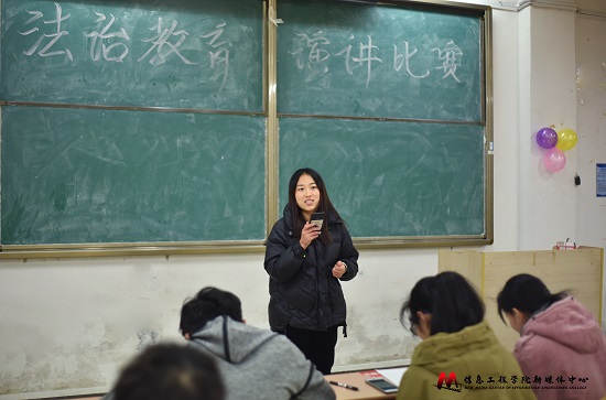 为了增强学校法治宣传教育,提高学生自我保护意识,让学生养成学法、懂法、守法的好习惯,营造文明、平安、和谐的校园育人环境。信息工程学院于11月27日举办了以“法治教育”为主题的演讲比赛活动。本次比赛的评委由我院学生会主席团王鑫、张昊、宋文暄、贾柳畅、王璇、顾广彬、杨佳敏、夏欣、刘家翼担任。