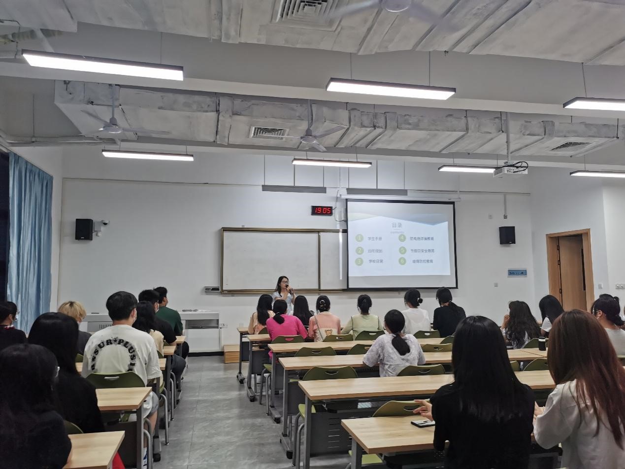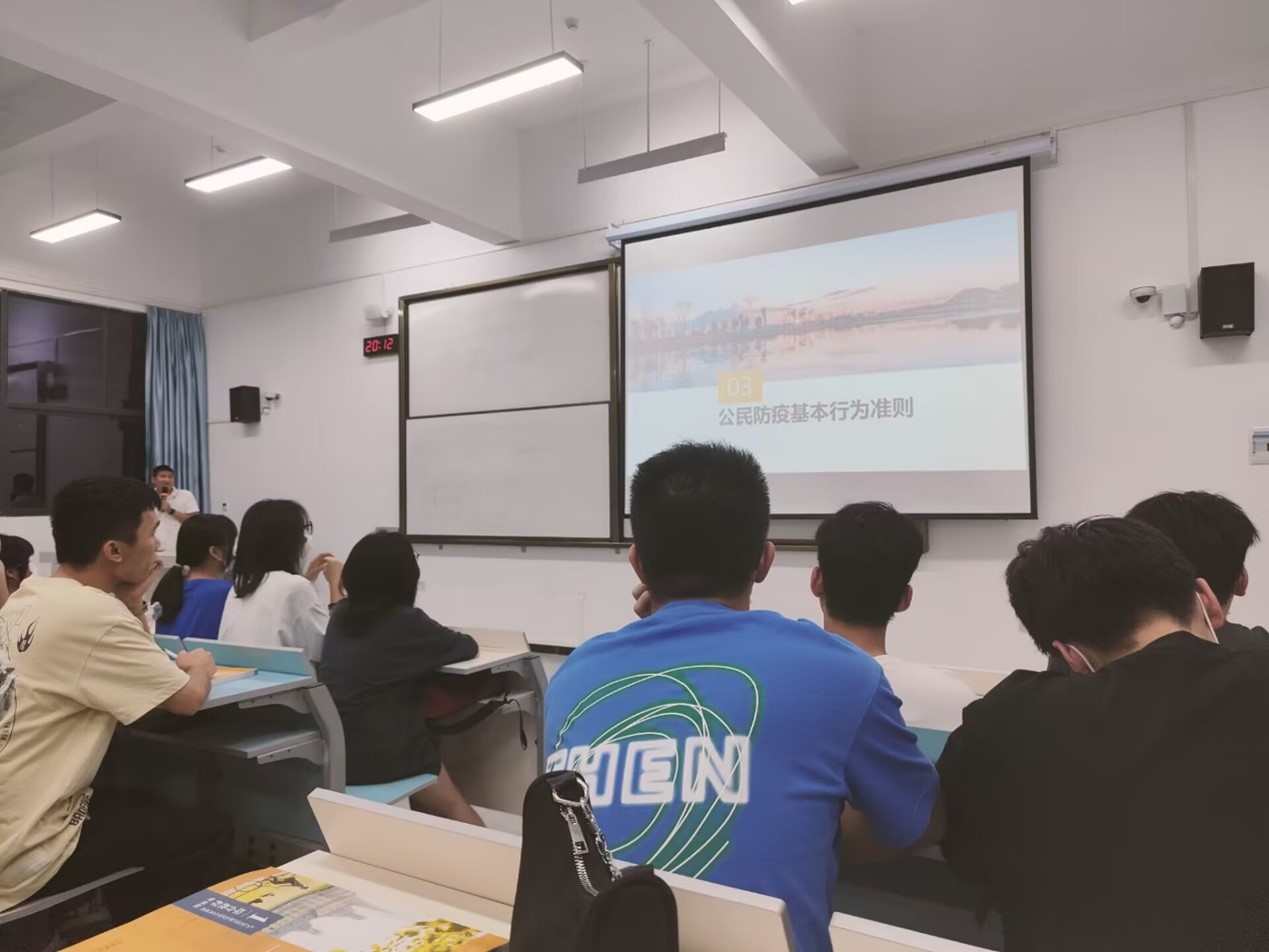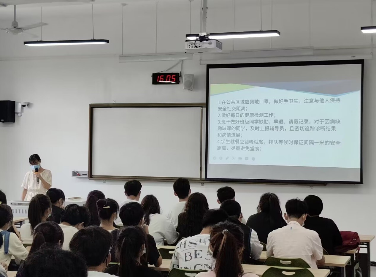 班会针对开学前、返校途中及开学后不同时间节点对疫情防控工作进行了解读和部署,结合入学教育围绕以下几个方面展开:一是明确学校管理制度,切实遵守管理规定;二是开展安全教育,谨防电信网络诈骗;三是做好学业规划,为未来前程做好准备;四是疫情防控教育,强调日常管理、监测预警及应急处理。