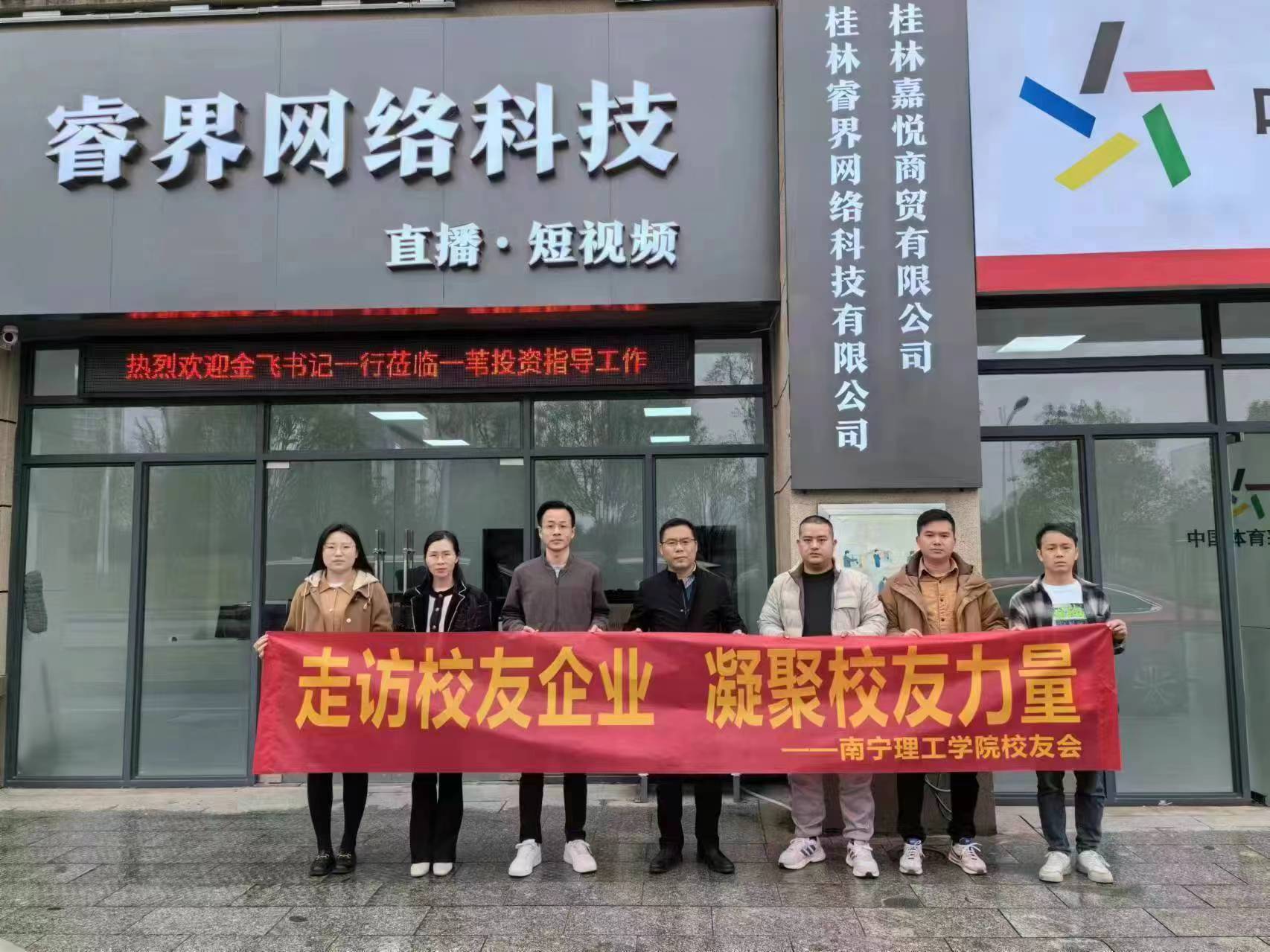 为增进校友情谊、深化校企合作,充分发挥校友企业资源优势,助力学校毕业生拓宽就业渠道,3月14日,我校党委书记金飞、商学院党总支书记姚顺良及毕业班辅导员一行,前往我校2012级市场营销专业唐玮亚校友企业——桂林睿界网络科技有限公司 “访企拓岗”,走访看望校友、调研校友企业、共商校企合作事宜。