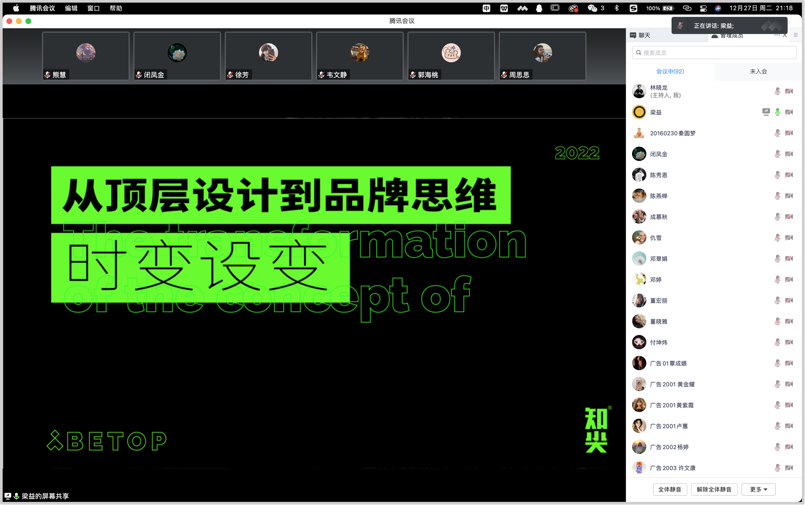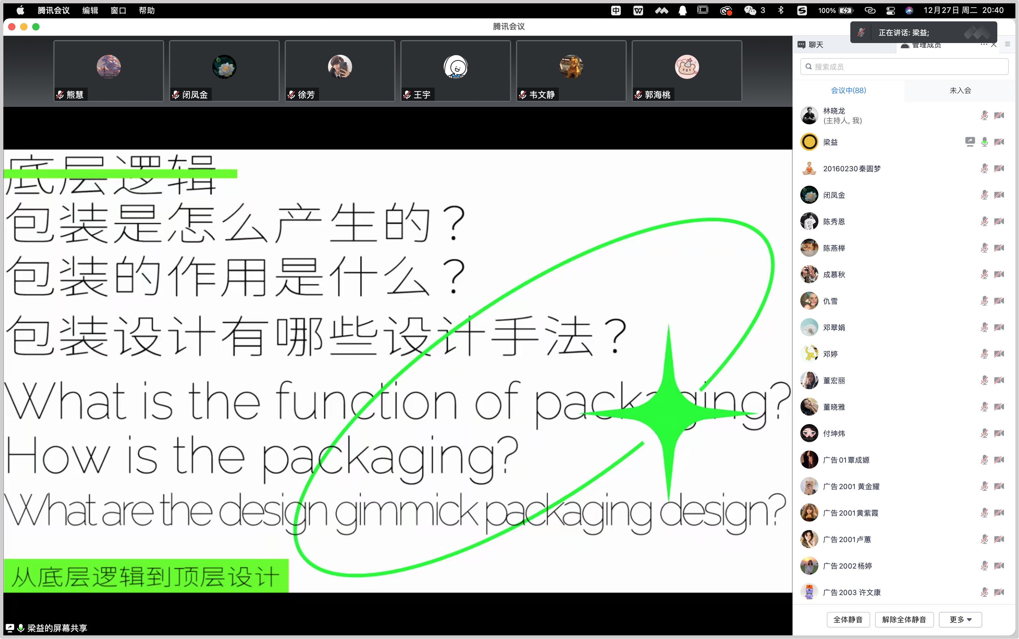 为了丰富广告学专业《包装设计实习》课程体验,提升同学们对商业实战包装设计的了解,2022年12月27日晚20:30至22:30,2020届广告学专业的100多名学生以线上会议的形式开展了《包装设计实习》分享会。会议由林晓龙老师主持,广州知尖品牌顾问有限公司联合创始人/群创意总监梁益受邀进行主题分享。
